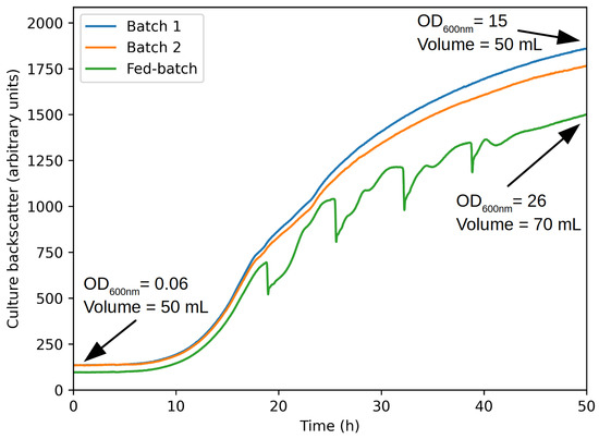 Backscatter signals from batch and fed-batch cultures conducted on the medium ensuring the highest productivity.