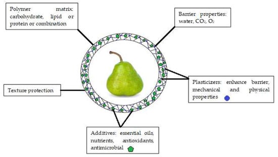 Main components and functions of edible coatings.