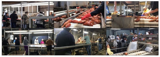 Photographs of hand-sorting at sweetpotato packing facilities. The photographs were taken by the authors in six different packinghouses in Mississippi in December of 2021.