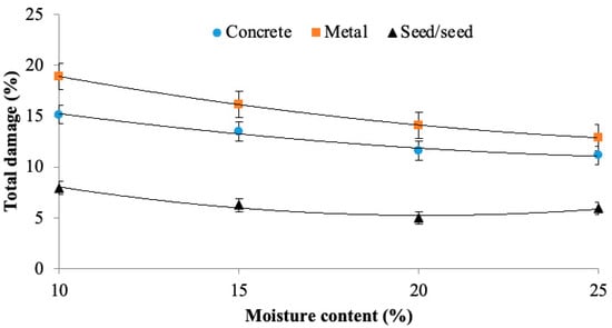 Synergistic effect of impact surface and moisture content on the total damage to corn seeds.