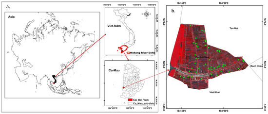 - Veettil, B.K.; Quang, N.X.; Trang, N.T.T. Changes in mangrove vegetation, aquaculture and paddy cultivation in the Mekong Delta: A study from Ben Tre Province, southern Vietnam. Estuar. Coast. Shelf Sci. 2019, 226, 106273. [Google Scholar] [CrossRef]