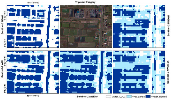 - Feyisa, G.L.; Meilby, H.; Fensholt, R.; Proud, S.R. Automated Water Extraction Index: A new technique for surface water mapping using Landsat imagery. Remote Sens. Environ. 2014, 140, 23–35. [Google Scholar]