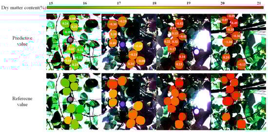 Comparison of predicted and measured values for sample fruits. Note: The numbers in the figure represent the difference between the predicted value and the reference value (i.e., predictive value—reference value).