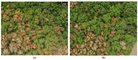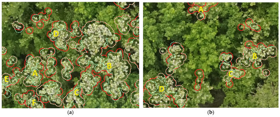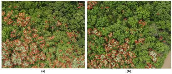 37], a deep learning approach was used to monitor the flowering of different tropical tree species. The ResNet-50 deep learning algorithm was used with UAV-obtained RGB images. The flower classification pixels were obtained with a recall of 85.8% and a precision of 95.3%. In [