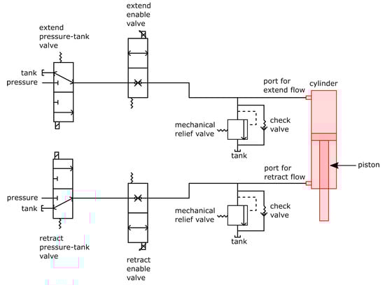 - Cundiff, J.S. Fluid Power Circuits and Controls: Fundamentals and Applications; CRC Press: Boca Raton, FL, USA, 2001. [Google Scholar]