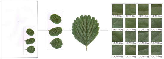 Example of the image bank formed by strawberry leaf cleavage blocks.