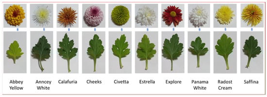 The Asteraceae boasts a presentative floricultural genus, chrysanthemum, which has a significant rate in terms of economic value and ranks second behind roses in the floral market worldwide []. The proliferation of diverse breeding cultivars of chrysanthemums worldwide has made their identification increasingly challenging, even for experienced researchers, due to the complexities inherent in chrysanthemum cultivars, which pose significant challenges in their management and authorized protection. Several complications have emerged as unforeseen obstacles in cultivar recognition, including the vast number of cultivars, complex floral structure, diverse floret types, and the highly heterozygous genetic capacity []. Thus, there is an urgent requirement for the creation of efficient development methods for rapid and accurate phenotypic recognition characteristics. Previous approaches, such as traditional morphology studies, comprehensive statistical analyses, and molecular marker studies, have been employed to address the challenges of identifying diverse chrysanthemum cultivars [,]. While these methods have provided valuable insights, they often involve laborious and time-consuming manual assessments. Molecular markers, though promising, have limitations in identifying cultivars with similar morphological characteristics and require significant time for testing [,]. The rapid and comprehensive identification of various chrysanthemum cultivars and their flowers presents a significant challenge, highlighting the need for alternative approaches.