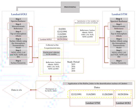 All the steps for image processing and product generation using the Landsat 5/TM and Landsat 8/OLI images are shown in Figure 3.