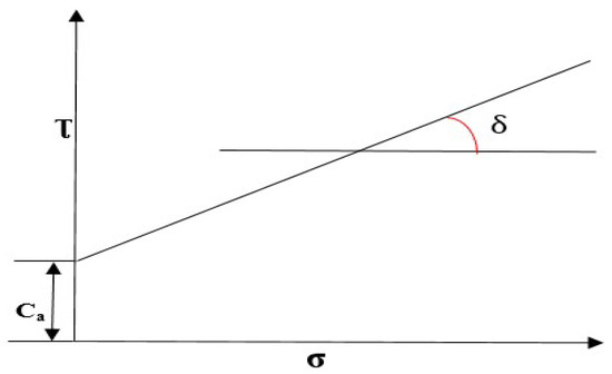 Figure 2 shows a straight line with a gentle slope can be drawn between the shear and normal stress. The point at which the line crosses the vertical axis determines the adhesion value (Ca) where the normal stress is zero. The angle of δ is determined by specifying the slope of the plotted line [8].