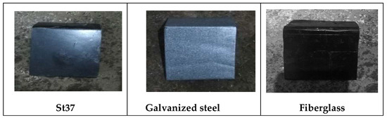 Five different cubic structures, 10 cm long and wide and with a thickness of 2 mm using different materials, including st37 (SST37), galvanized steel, fiberglass, and nano-coated materials of titanium nitride and steel-based tantalum carbide, were prepared. Galvanized steel is especially suitable in various weather environments due to its resistance to moisture and wetting (hydrophobicity), as well as anti-rust, anti-wear, and anti-corrosion properties. The adhesion of the soil is a function of moisture, and the tensile strength is also a linear function of adhesion. By increasing the adhesion of the soil in the blades, the tensile strength increases and the tillage quality decreases [6,11].
