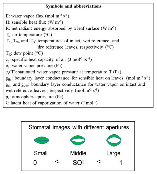Kitaya Y, Ikeda N, Endo R, Shibuya T. A Simple Method for Estimating Stomatal Aperture from Temperature Measurements on Intact Leaves and Wet and Dry Artificial Reference Leaves. AgriEngineering. 2024; 6(2):1335-1348. https://doi.org/10.3390/agriengineering6020077