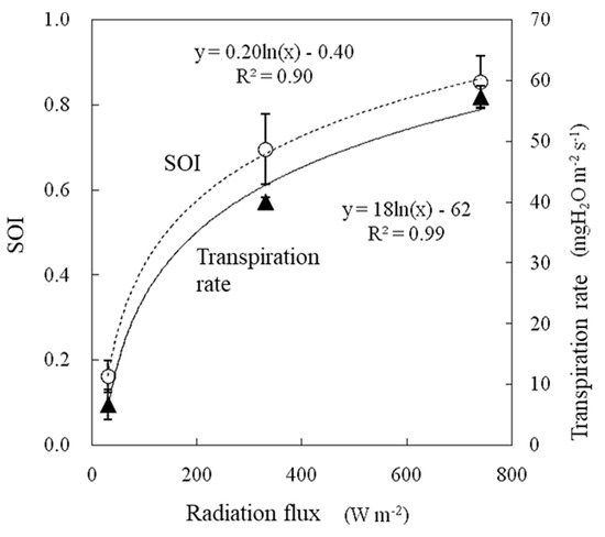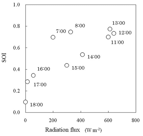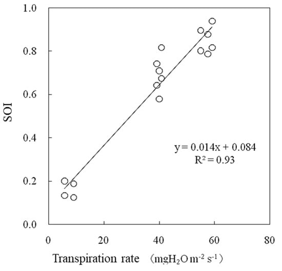2.6. Evaluation to Confirm the Effectiveness of the SOI in a Greenhouse