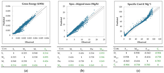 Table 6. MLR models for the assessment of gross power, fuel hourly consumption, mass of wood chipped, gross energy, specific mass, and specific cost.