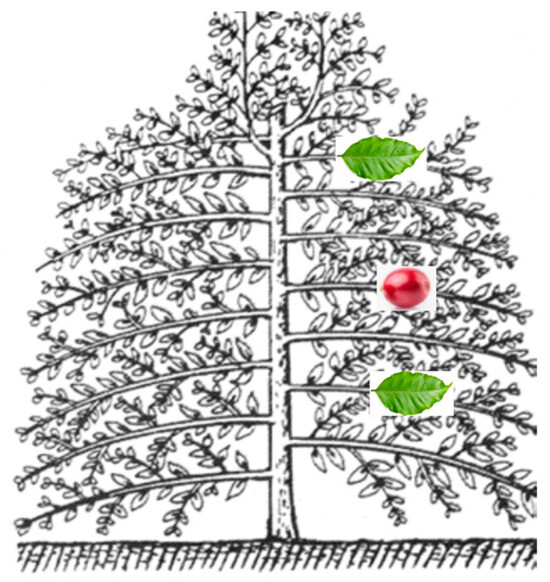 The study was carried out in the Sector of Coffee Farming (Federal University of Uberlândia—UFU, Uberlândia, Brazil). The area has an altitude of 912 m, with geographic coordinates of 18°58′52″ S latitude and 48°12′24″ W longitude. The climate in the region is the megathermal humid tropical Aw, according to the Köppen classification, characterized by hot, humid summers and cold, dry winters. The mean monthly air temperature varies from 20.9 to 23.1 °C. The mean annual precipitation is 1500–1600 mm [9]. The soil has a slightly undulating topography.