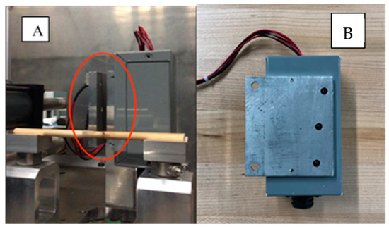 The speed sensor used on the test device (A) installed front view; (B) side view.
