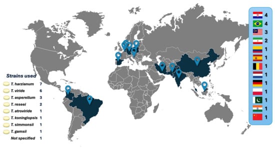 - Yao, X.; Guo, H.; Zhang, K.; Zhao, M.; Ruan, J.; Chen, J. Trichoderma and Its Role in Biological Control of Plant Fungal and Nematode Disease. Front. Microbiol. 2023, 14, 1160551. [Google Scholar] [CrossRef] [PubMed]