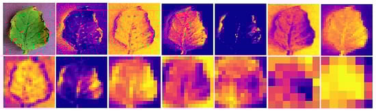 Right from the first layer, it can be seen that the network is trying to learn any patterns that may be available in the images; for this reason, all the features of an RGB image can be recognised in a single extraction. However, as we delve deeper into the convolutional layers, the extractions begin to focus on specific disease patterns only, whether on the marginal blight of the leaves or scattered points on the leaf blade, around the edges or even on the most obvious veins. The results of the max pooling layers played a fundamental role in these abstractions, as they were able to sweep the image to reduce the dimension of the data while preserving the most relevant information in the previous dimension.