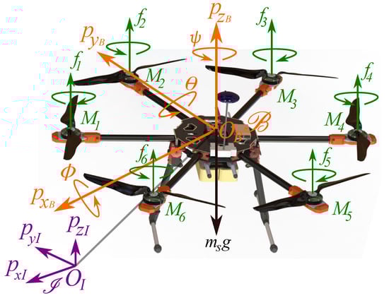 2.2. Hexacopter UAV Dynamics Model