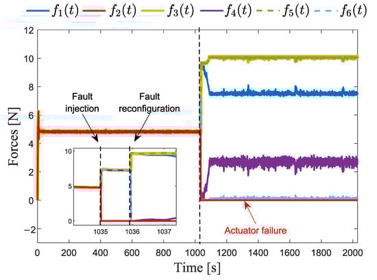 Forces produced by the actuators under the proposed FTC scheme.