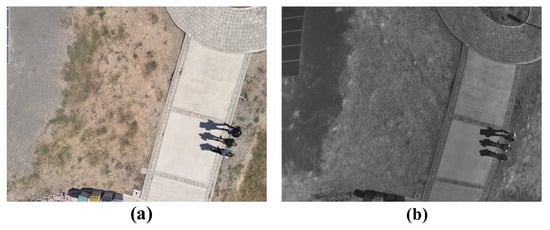 Scenario 2—Example of an RGB–NIR pair used in the experiments: (a) RGB image, (b) NIR image.