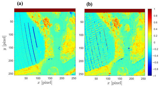where a and b represent the local windows in the images; and are the means of a and b, respectively; and are the standard deviations of a and b, is the covariance of a and b, and are small constants to stabilize the division with weak denominator, and and are constants to weight the relative importance of the components. The SSIM index ranges between and 1, where 1 indicates perfect similarity. Higher values imply greater similarity between the images.