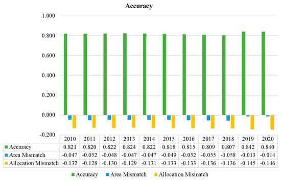 Accuracy of Level 1 MapBiomas Collection 6 for the years 2010–2020 across the dairy-producing municipalities in the IRW, located in the states of Alagoas and Pernambuco.