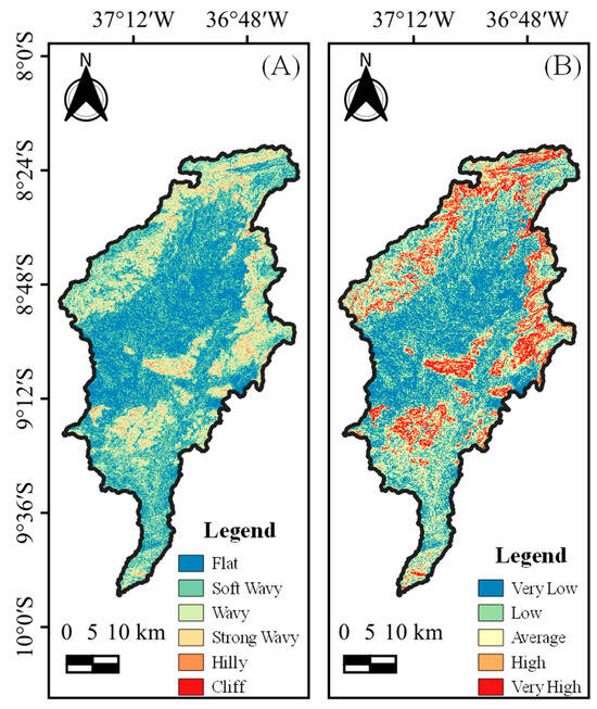 The relief slope classification (Table 4) was carried out according to the methodology proposed by Embrapa [58].