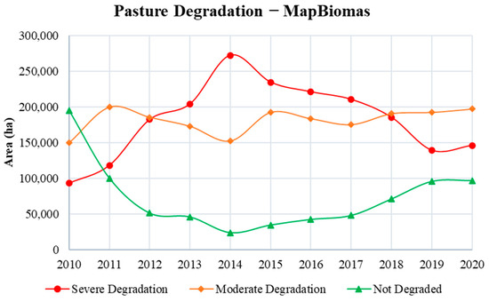 The Pasture Quality data were extracted from the MapBiomas Brasil platform, from Collection 6, which is available at: https://plataforma.brasil.mapbiomas.org/ (accessed on 20 October 2022).