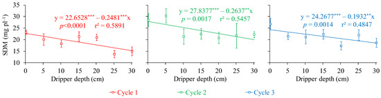 | SDM (mg pl−1) | 1.72 × 102 * | 9.39 × 101 ** | 2.51 × 101 ** | 11.23 | 0 | 23.21 | b | 28.48 | a | 26.75 | ab |