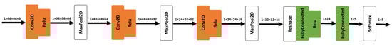 - SqueezeNet: SqueezeNet is a compact neural network architecture that achieves AlexNet-level accuracy with significantly fewer parameters. It uses “squeeze” and “expand” layers to reduce the number of parameters, optimizing efficiency []. This design allows SqueezeNet to deliver high performance in image classification tasks while being highly suitable for deployment on devices with limited memory and computational power. Figure 8 shows the architecture of SqueezeNet.