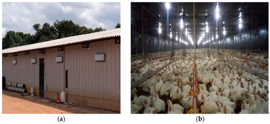 - Garcia, R.G.; Lima, N.D.S.; Naas, I.A.; Caldara, F.R.; Sgavioli, S. The typology of broiler house and the impact in the locomotion of broilers. Eng. Agríc. 2018, 38, 326–333. [Google Scholar] [CrossRef]