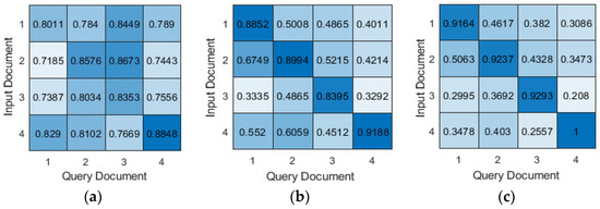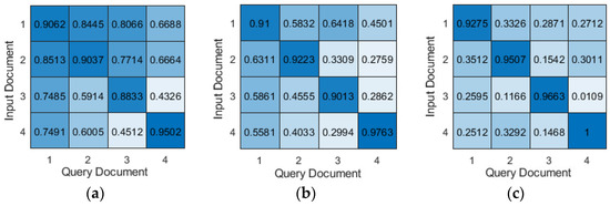- Lahitani, A.R.; Permanasari, A.E.; Setiawan, N.A. Cosine similarity to determine similarity measure: Study case in online essay assessment. In Proceedings of the 2016 4th International Conference on Cyber and IT Service Management, Bandung, Indonesia, 26–27 April 2016. [Google Scholar] [CrossRef]