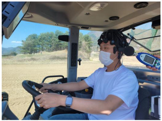 An EEG measurement test was conducted to derive agricultural work stress in response to changes in the noise and vibration generated from agricultural machinery during agricultural work. Seventeen farmers were selected as test participants. They were adult males aged 20 to 80 years old. For all of them, drinking, smoking, and taking medications were restricted from the day before the test. In addition, they had no history of neuropsychiatric orders. The participants were informed of the test method and possible risks before the EEG measurement test, and the test was conducted under the consent of the ethics committee and participants. In the test, EEG measurement was performed for 3 min while the participants were working and resting. In the working state, the participants performed actual agricultural work with various agricultural machines, such as tractors, transplanters, harvesters, and pest control machines. In the resting state, they rested on a chair without riding on agricultural machinery. The noise and vibration generated by agricultural machinery were measured in the working state.