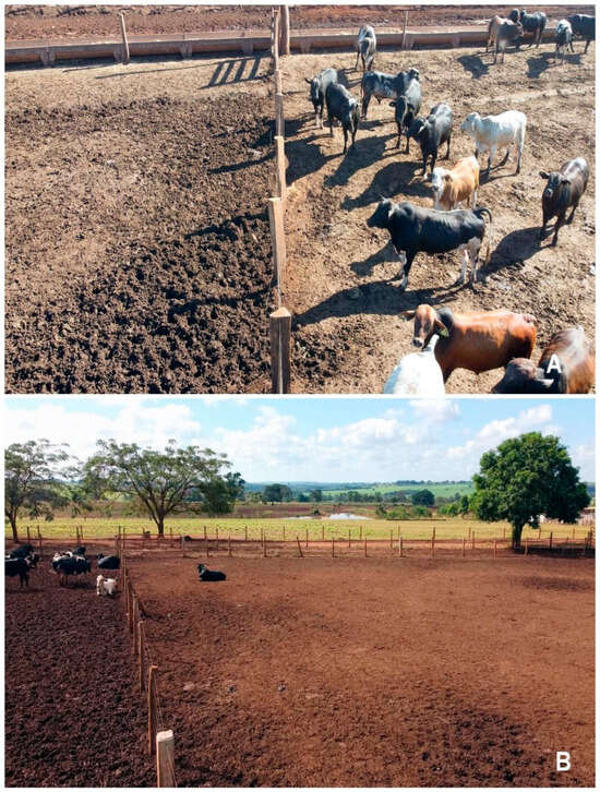 9]. The cattle confinement structure in Frutal has an area of approximately 110 ha, which can accommodate the fattening of approximately 17,000 animals of taurine and zebu breeds. The finishing stage lasts approximately 180 days. The trough space per animal is 30 linear cm.