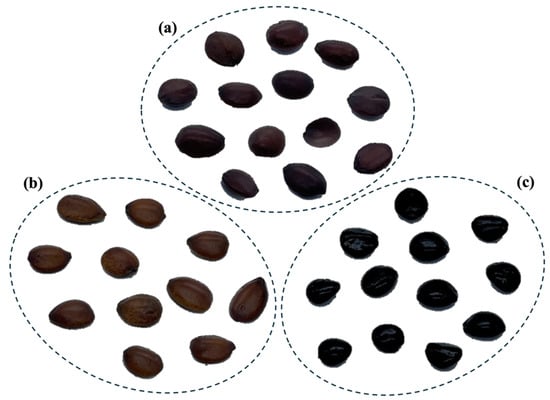 As shown in Figure 1, this study used seeds from three species as samples: Ziziphus jujuba Mill. var. spinosa (Figure 1a), Ziziphus mauritiana Lam. (Figure 1b), and Hovenia dulcis Thunb. (Figure 1c). The National Development Institute of Korean Medicine (94 Hwarang-ro, Gyeongsan-si, Gyeongsangbuk-do, Republic of Korea) collected and verified the seeds produced and distributed from various regions. Through the collection and verification process, samples representing natural variations in size, color, and shape for each species were gathered.