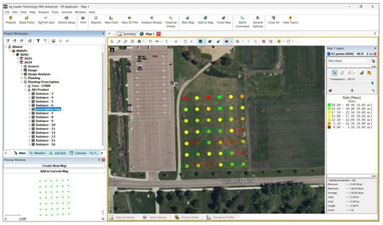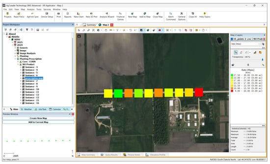 Precision agriculture (PA) involves collecting, analyzing, and taking actions based on site-specific data [1,2]. With the world’s population projected to reach 8.7 billion by 2050 [3,4], feeding more people is a great challenge for the agriculture–food industry [5], and the question is, how can the same size of land feed a significantly higher population? PA can help the agricultural sector meet increasing demand for food products while also assisting farmers improve efficiencies through reduced input costs [6]. PA technologies such as Variable Rate Application (VRA) can improve resource management through the precise application of inputs, such as seeding [7], fertilizer [8], irrigation [9], lime, and pesticides [10], leading to more efficient agricultural production [6].
