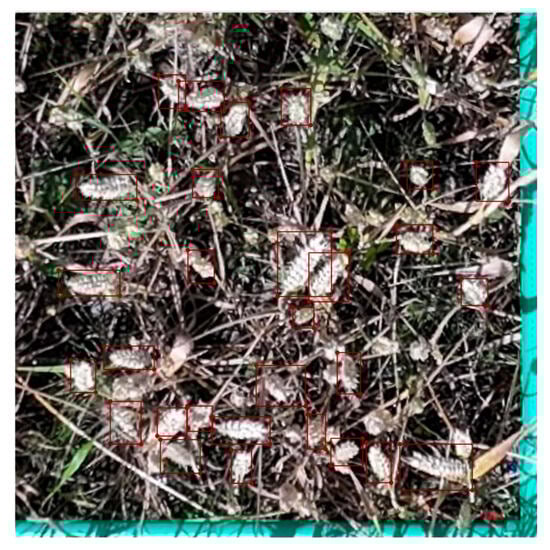 The dataset resulting from this study contained 556 images (see Table 4) with annotated and labelled wheat heads. The purpose of the dataset is to train the wheat detection AI model, which will be trained on these images in the future. Figure 7 shows labelled image fragments—red boxes (described in Section 2.3). The images are separated into directories, with each directory corresponding to a lot.