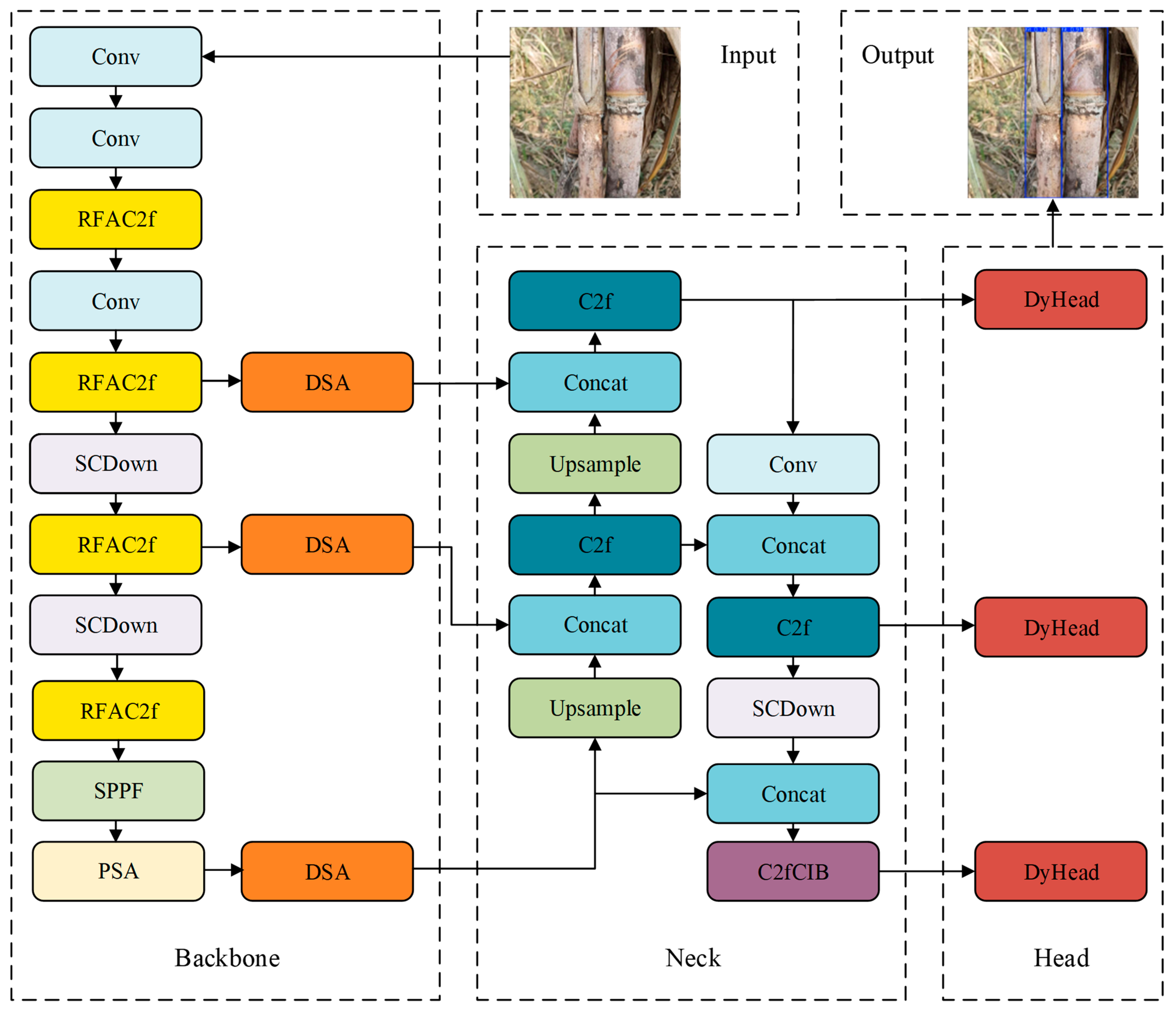 Chicago/Turabian StyleLi, Meng, Xue Ding, Jinliang Wang, and Rongxiang Luo. 2025. "SCS-YOLO: A Lightweight Cross-Scale Detection Network for Sugarcane Surface Cracks with Dynamic Perception" AgriEngineering 7, no. 10: 321. https://doi.org/10.3390/agriengineering7100321