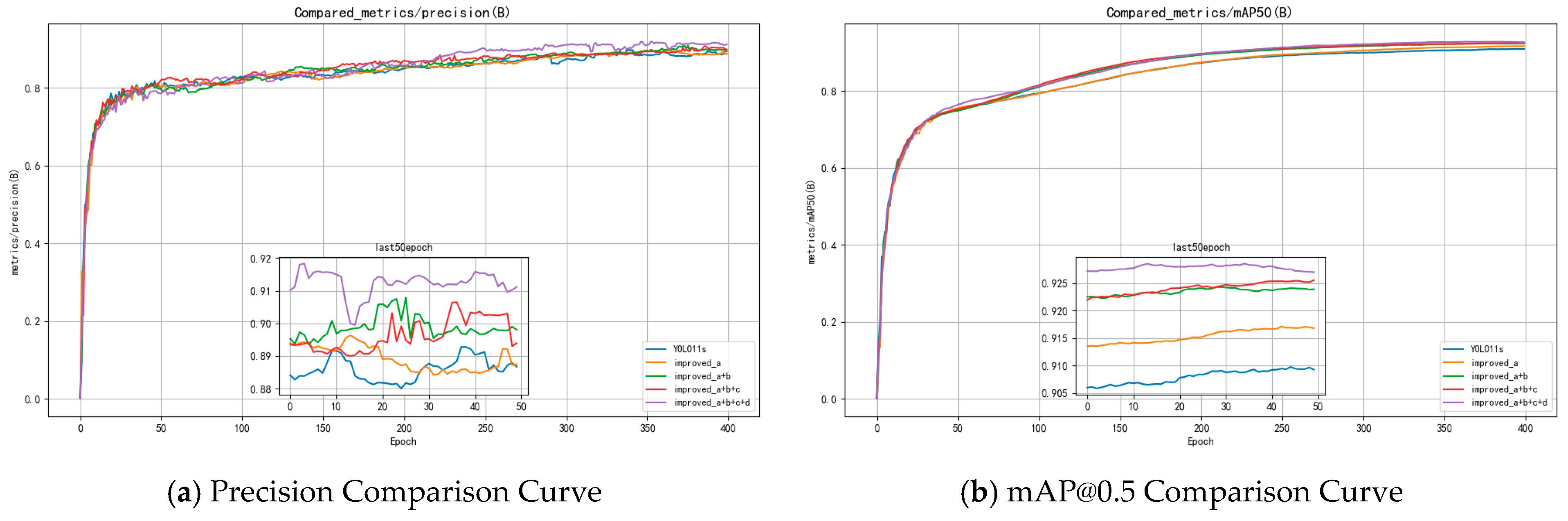 During model training, the calculation of CIoU loss is based on the scaled bounding boxes. This adaptive adjustment mechanism not only improves the smoothness of the optimization process but also balances the convergence speed and localization accuracy while effectively enhancing the overall training stability of the model [31].