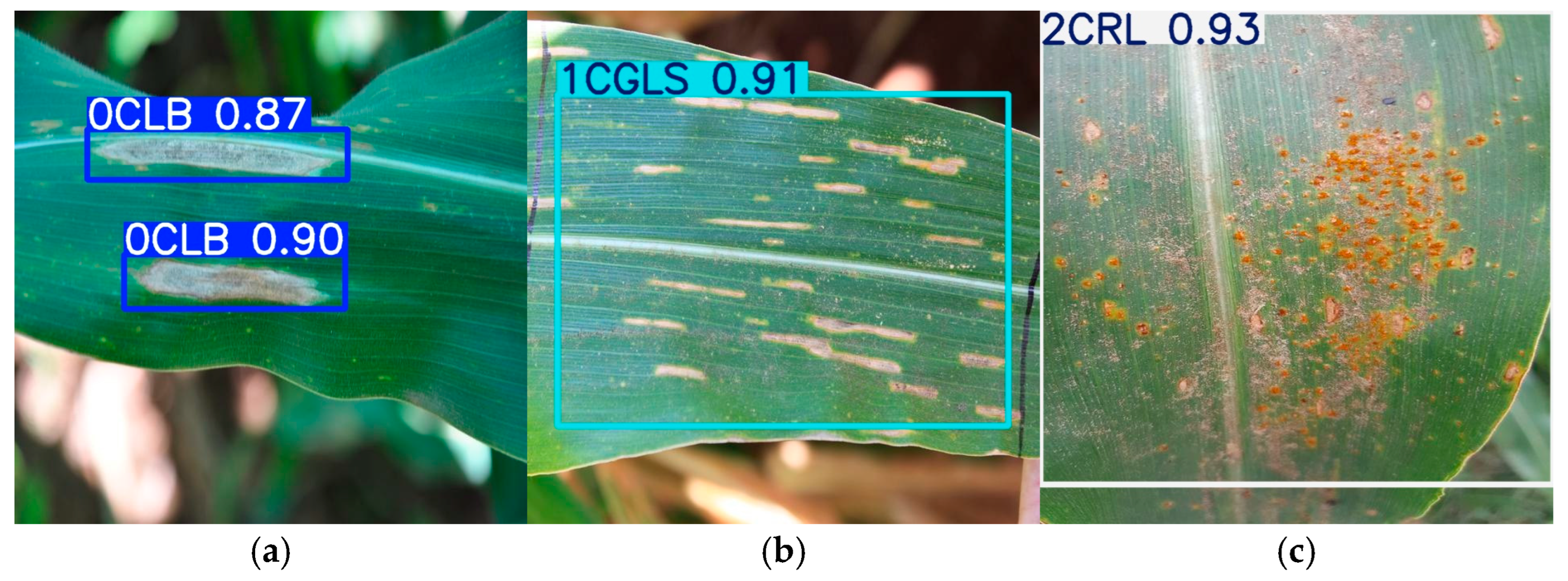 In practical maize fields, detection models often face interference from variable environmental factors, such as uneven illumination (e.g., direct sunlight, overcast), random camera angles, and leaf occlusion by weeds or adjacent plants. These factors introduce significant noise into image data, and the ability of a deep learning model to perform robust identification under such conditions largely depends on the completeness and diversity of the training dataset [12].