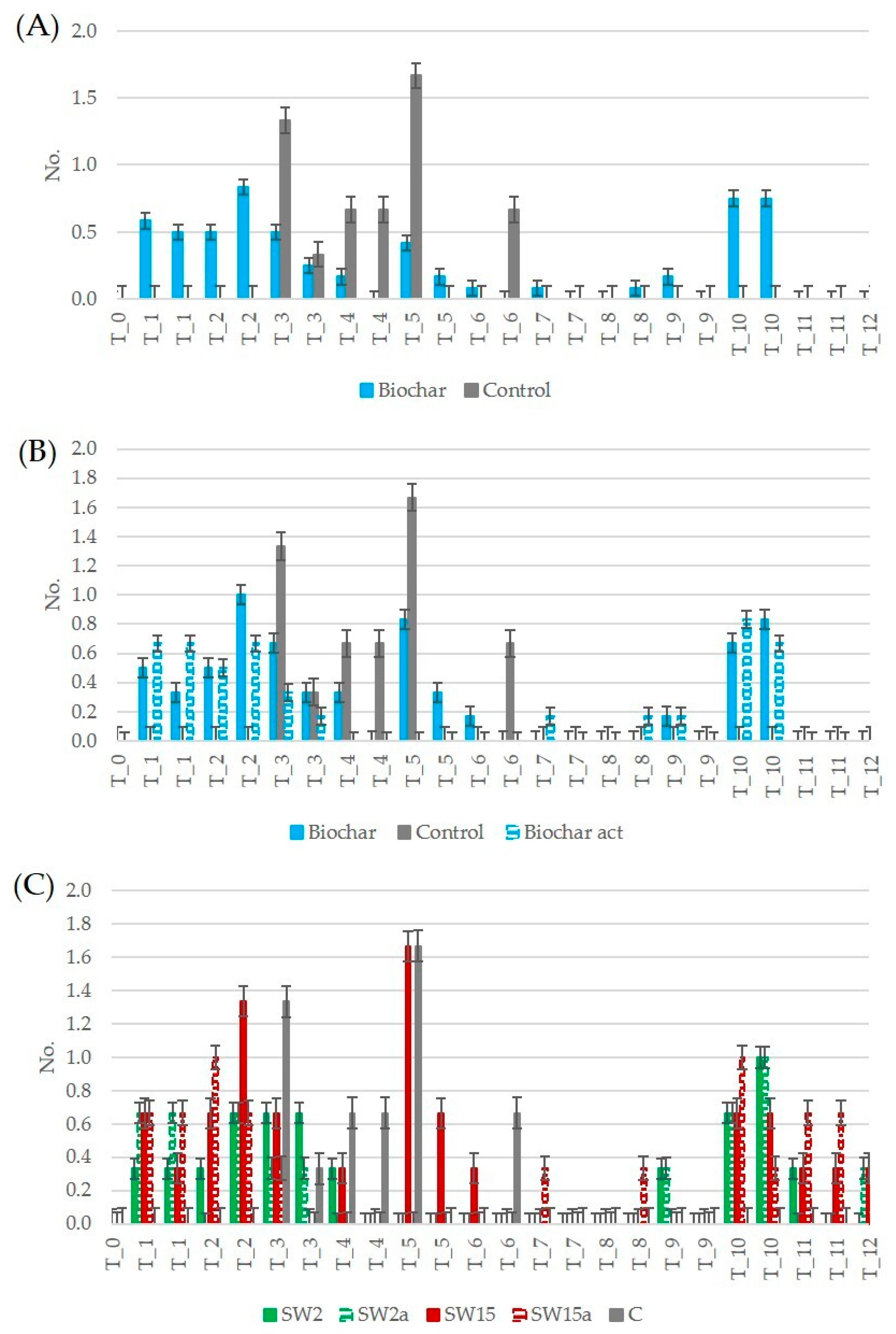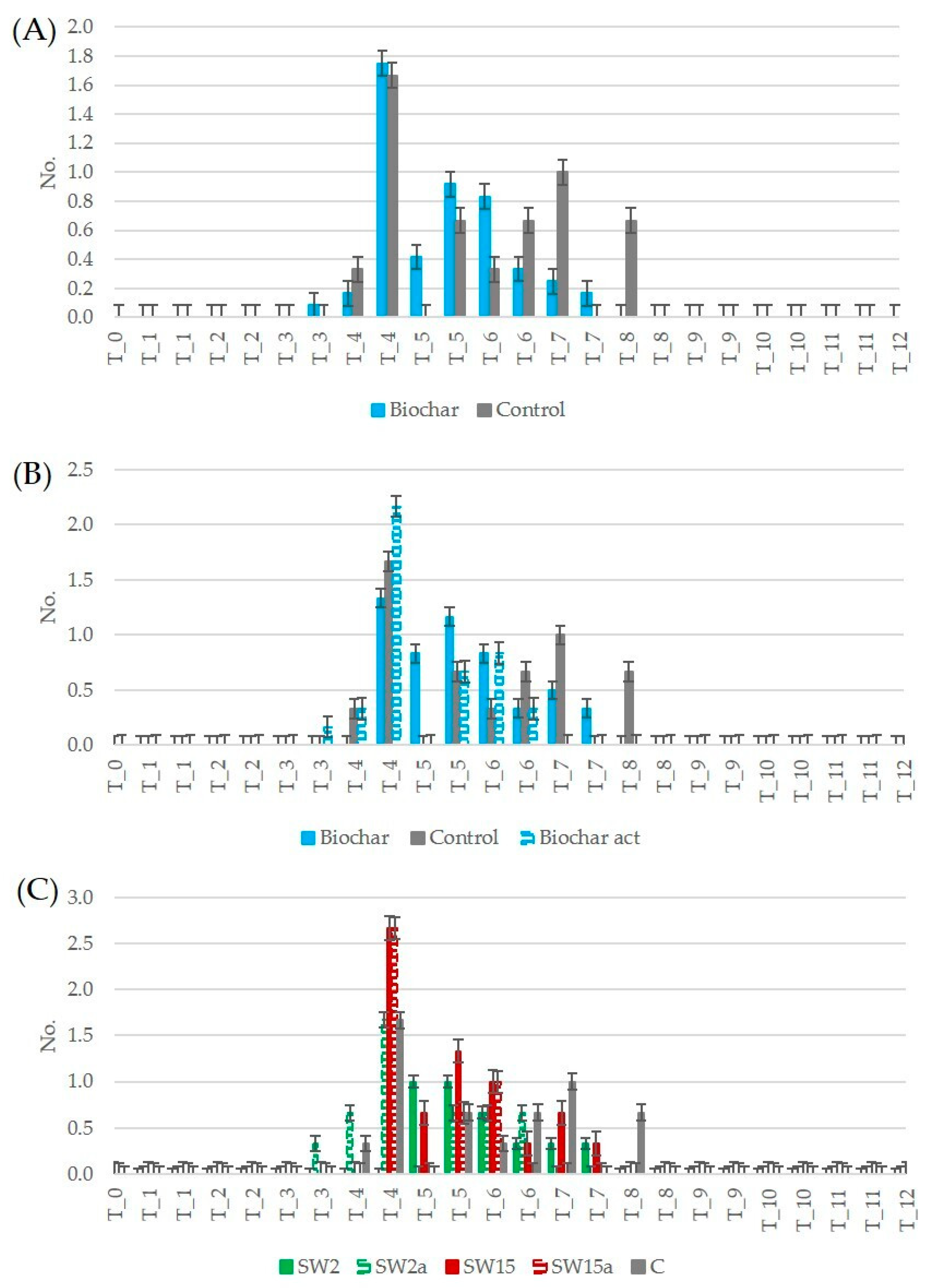 - Graber, E.R.; Harel, Y.M.; Kolton, M.; Cytryn, E.; Silber, A.; David, D.R.; Tsechansky, L.; Borenshtein, M.; Elad, Y. Biochar impact on development and productivity of pepper and tomato grown in fertigated soilless media. Plant Soil 2010, 337, 481–496. [Google Scholar] [CrossRef]