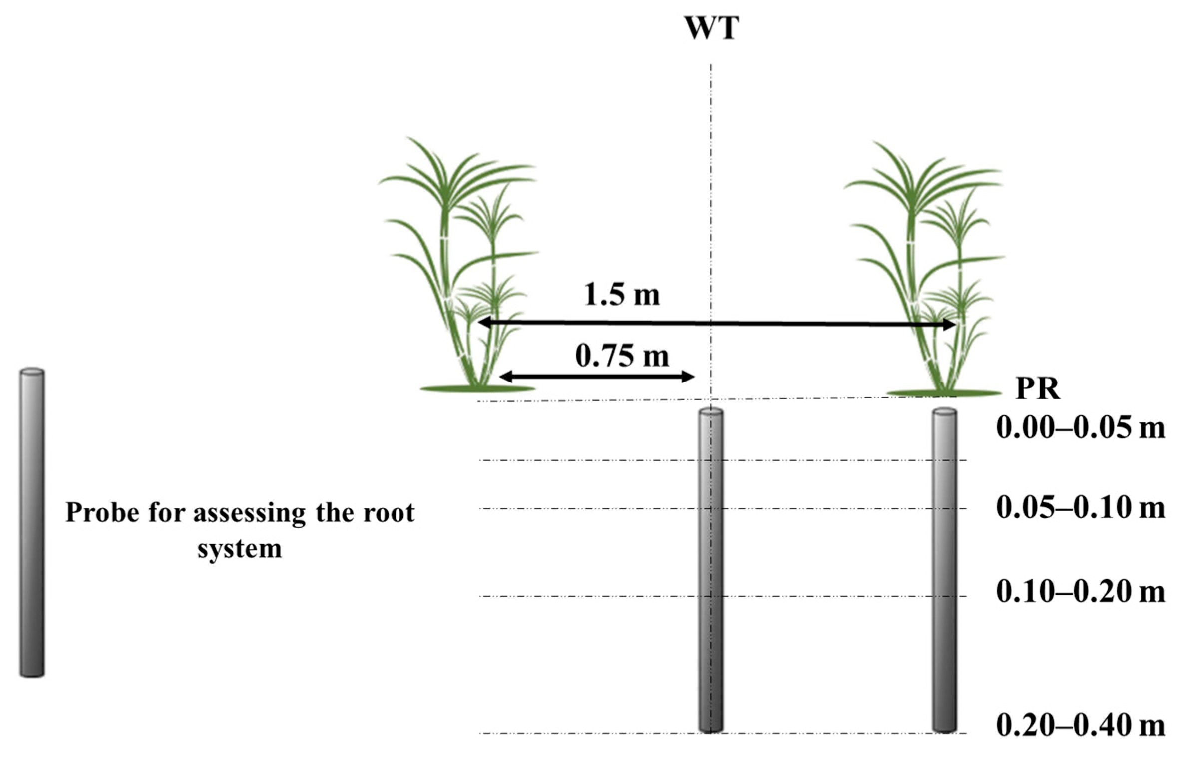 - Faroni, C.E.; Trivelin, P.C.O. Quantificação de raízes metabolicamente ativas de cana-de-açúcar. Pesq. Agropec. Bras. 2006, 41, 1007–1013. [Google Scholar] [CrossRef]