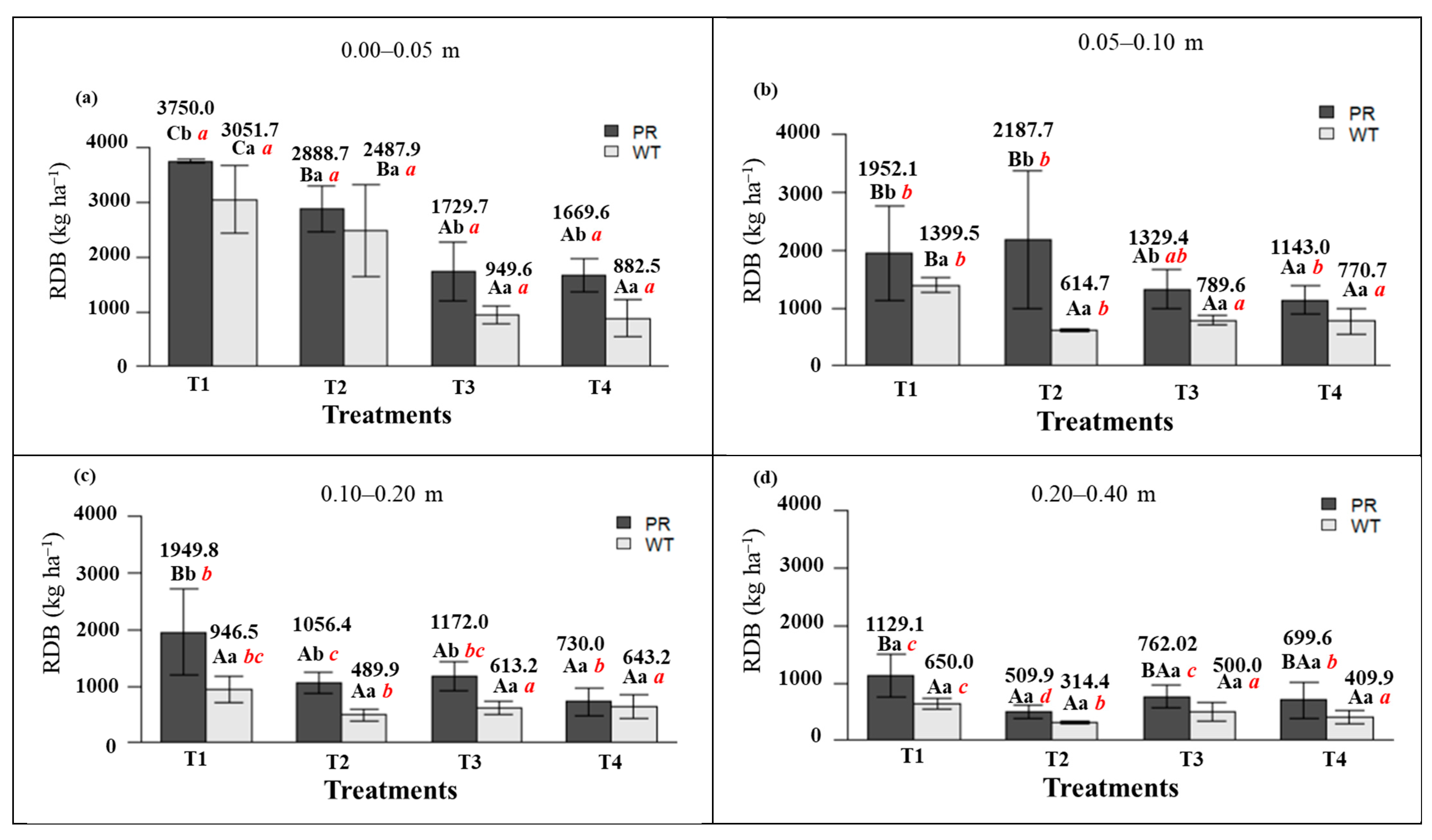 - Oliveira, I.N.; Souza, Z.M.; Bolonhezi, D.; Totti, M.C.V.; Moraes, M.T.; Lovera, L.H.; Lima, E.S.; Esteban, D.A.A.; Oliveira, C.F. Tillage systems impact on soil physical attributes, sugarcane yield and root system propagated by pre-sprouted seedlings. Soil Tillage Res 2022, 223, 105460. [Google Scholar] [CrossRef]