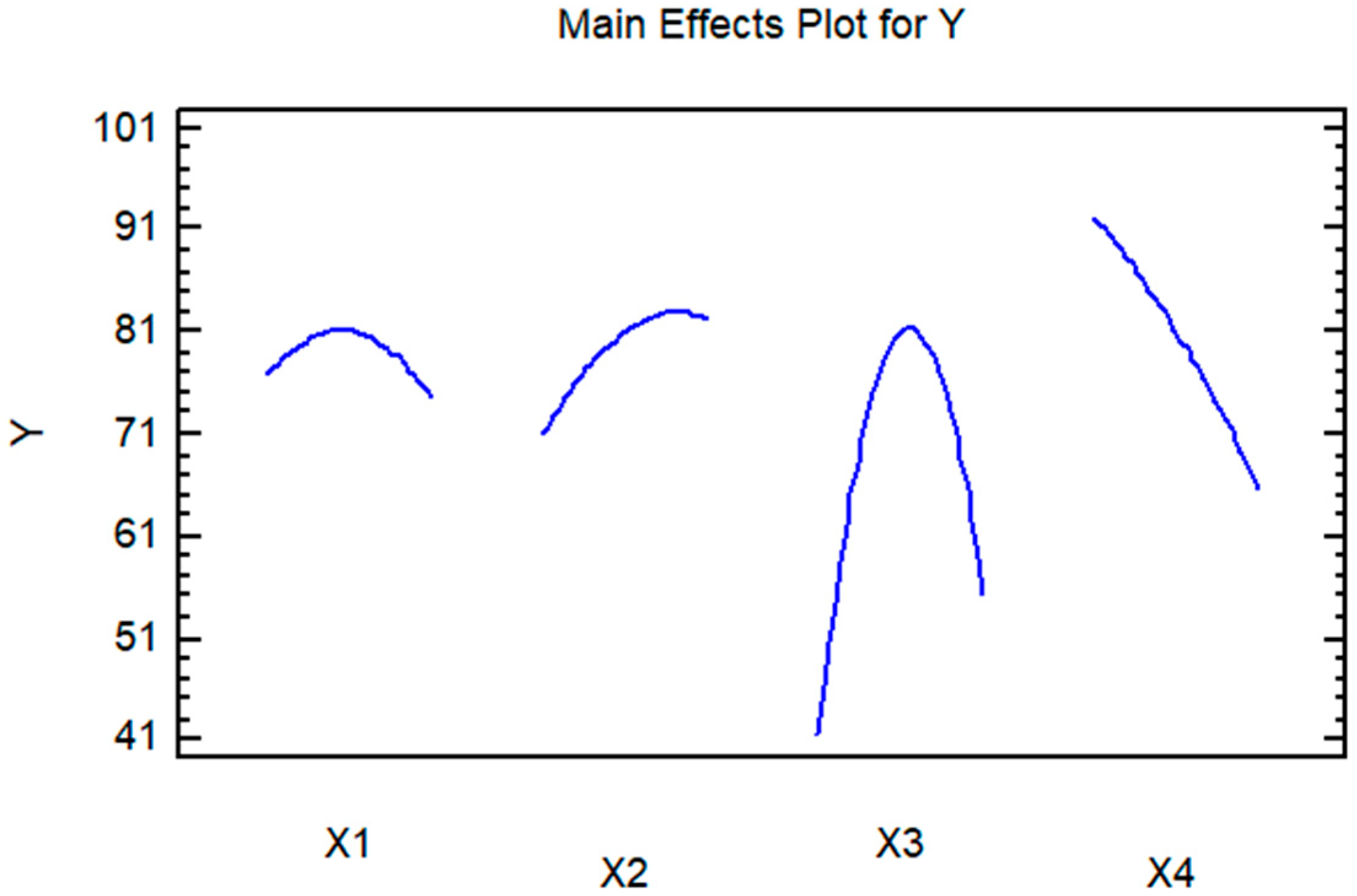 - Factor X4: The line Y = f(X4) has the steepest slope, confirming that X4 has a significant impact on Y, as also indicated by ANOVA.