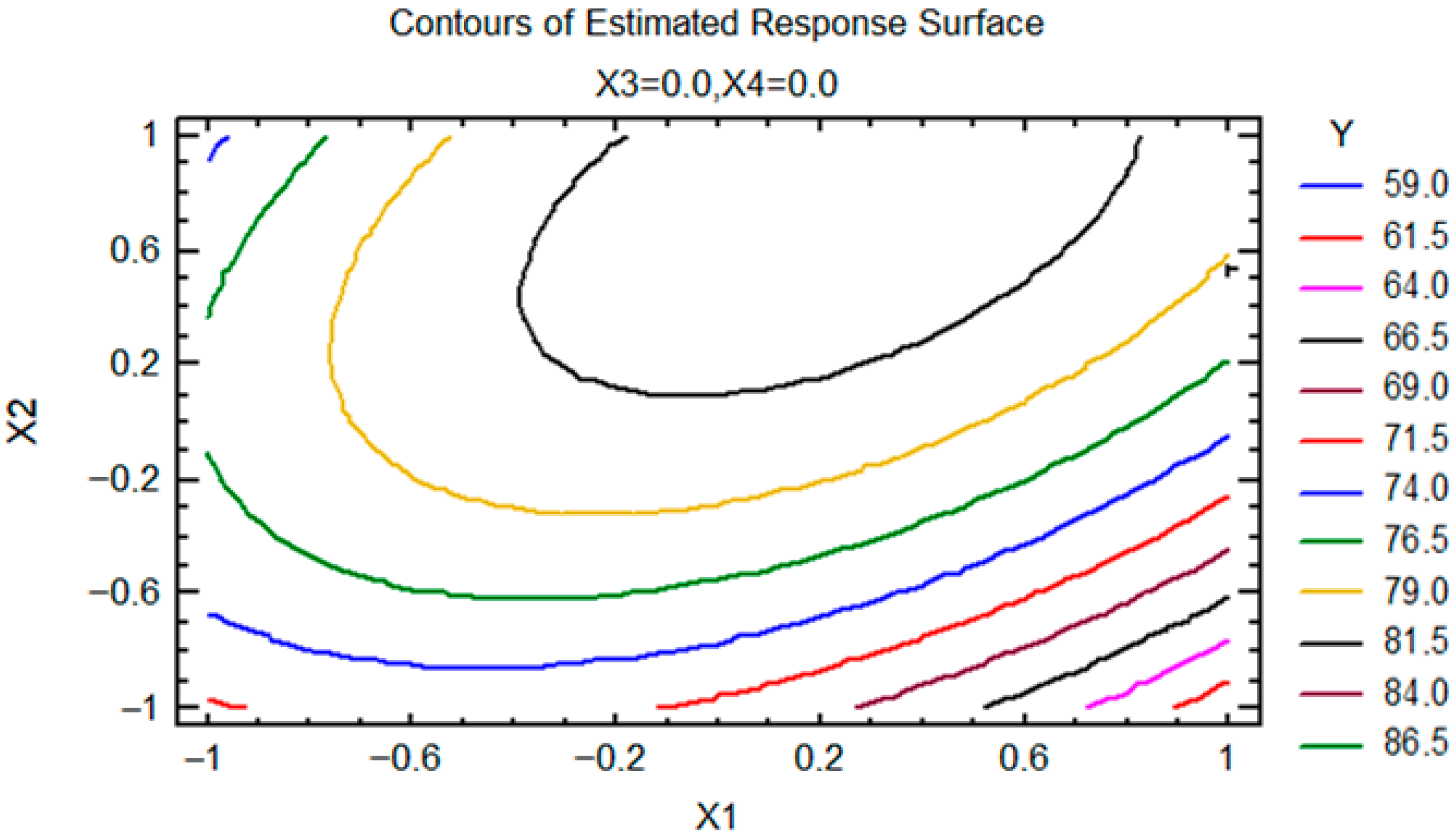 − 3.93744·X1·X3 − 10.9509·X1·X4 − 4.38915·X22 − 1.31256·X2·X3 + 5.63836·X2·X4