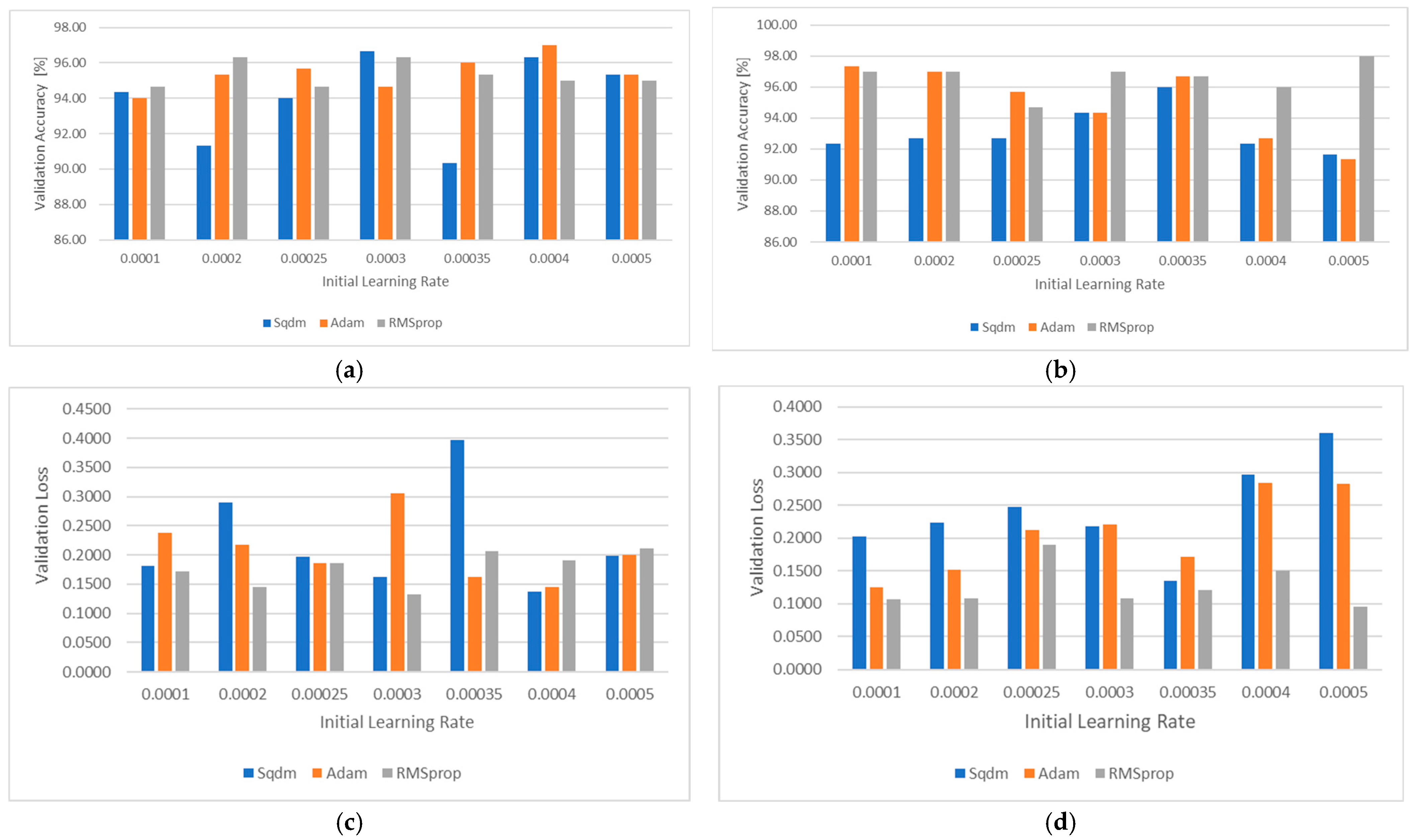 Figure 8) and for GoogLeNet with the RMSprop optimization algorithm and ILR = 0.0005 (