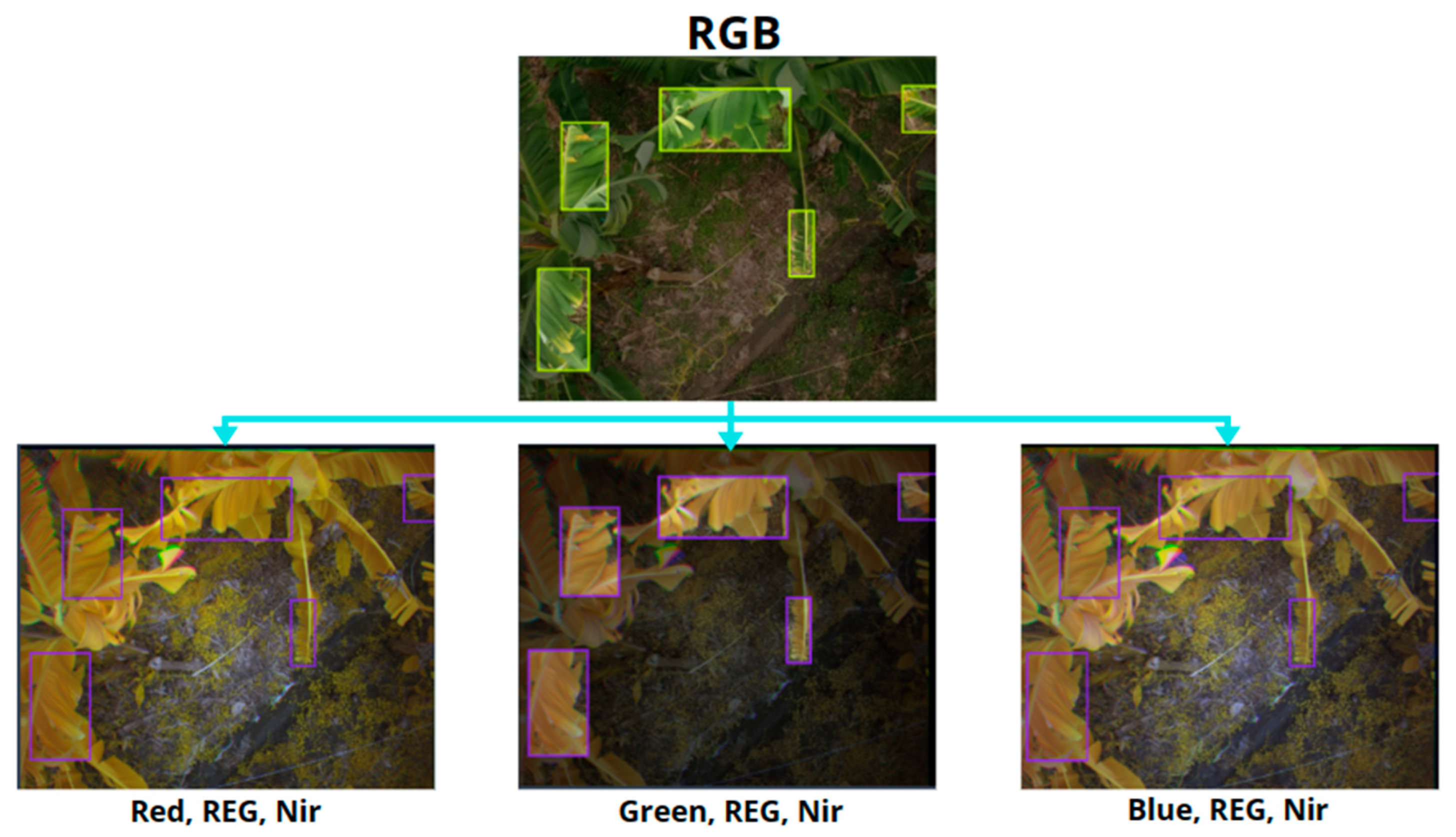 - Choosumrong, S.; Hataitara, R.; Sujipuli, K.; Weerawatanakorn, M.; Preechaharn, A.; Premjet, D.; Laywisadkul, S.; Raghavan, V.; Panumonwatee, G. Bananas diseases and insect infestations monitoring using multi-spectral camera RTK UAV images. Spat. Inf. Res. 2023, 31, 371–380. [Google Scholar] [CrossRef]