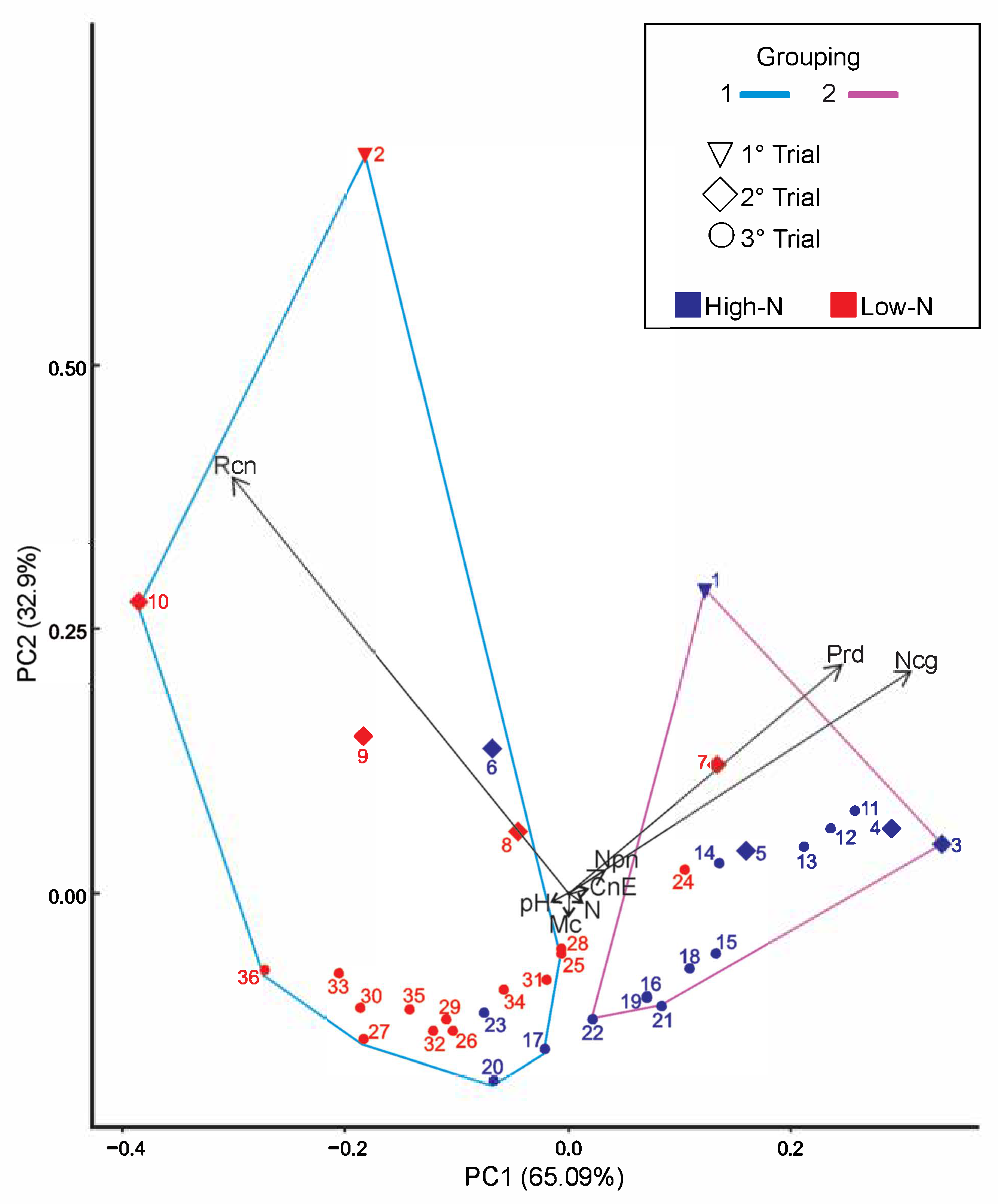 Low-N | 23.9 b | 24.08 | 5.15 b | 4.33 |