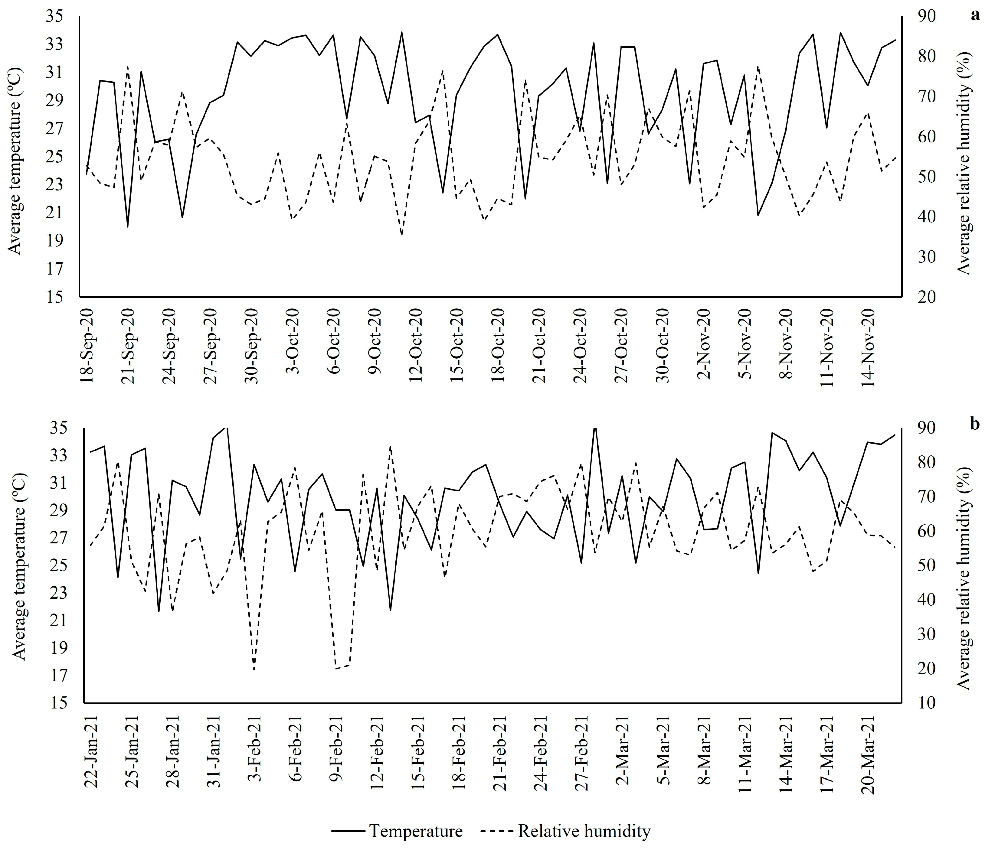 - Ferreira, D.F. SISVAR: A computer analysis system for fixed effects split plot type designs. Rev. Bras. Biom. 2019, 37, 529–535. [Google Scholar] [CrossRef]