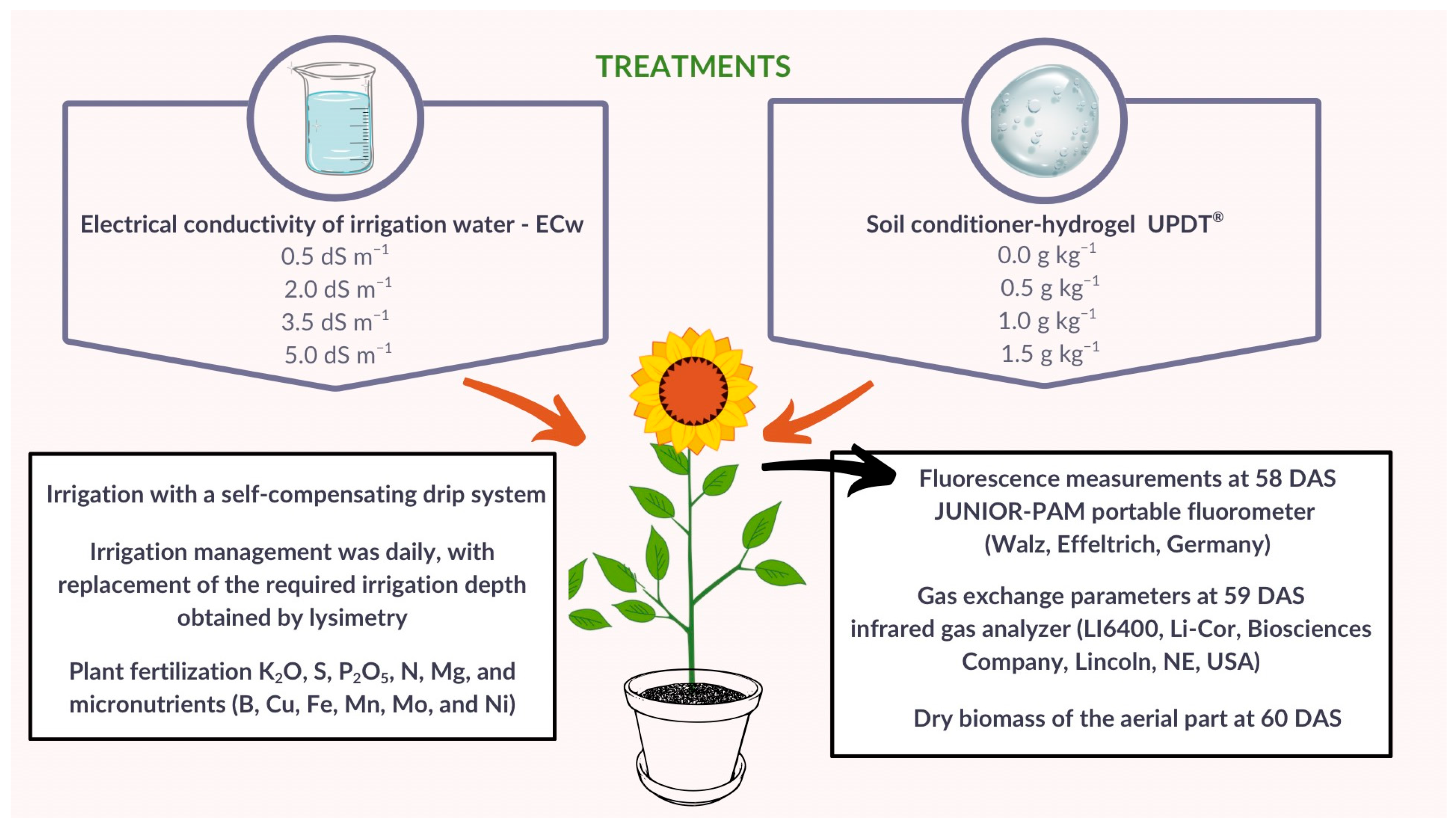 APA StyleMarques, P. A. A., Martins, J. B., Santos Júnior, J. A., Gomes, T. M., Coelho, R. D., Fritsche-Neto, R., & Villa e Vila, V. (2025). Hydrogel Soil Conditioner as an Input for Ornamental Sunflower Production Under Saline Water Irrigation: An Alternative Use for Low-Quality Water. AgriEngineering, 7(10), 344. https://doi.org/10.3390/agriengineering7100344
